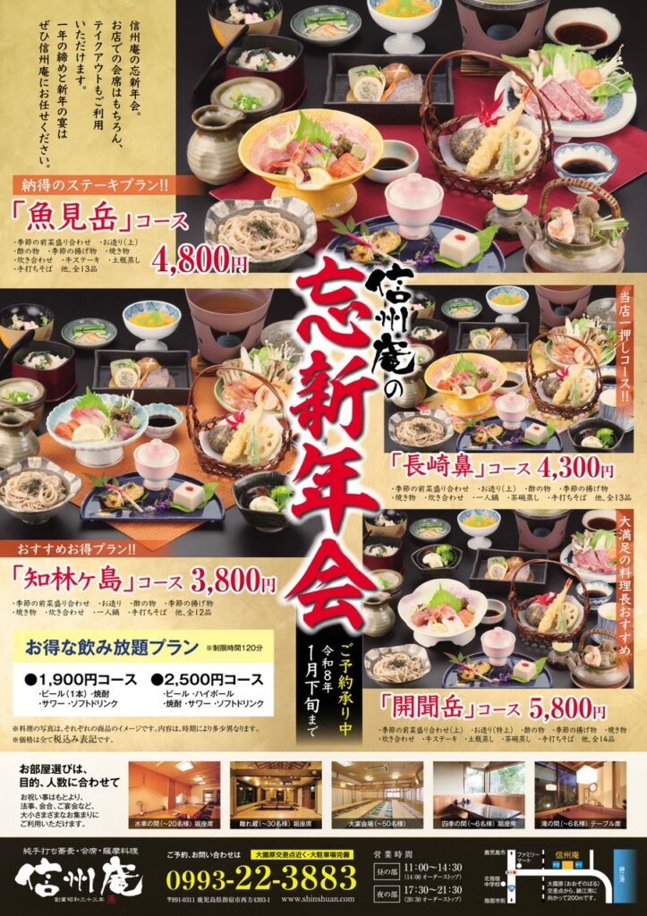 令和7年忘新年会とおせち料理、年越しそばのパンフレット出来ました。